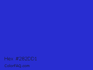 Hex #282dd1 Color is a normal blue color and the nearest color is Palatinate Blue #273be2. Hex code #282dd1 and RGB value is rgb(40,45,209). In RGB color space, this color is composed of 16% red, 18% green, 82% blue, In CMYK color space, this color is composed of 81% cyan, 78% magenta, 0% yellow , 18% black , In HSL color space, this color has a hue angle of 238° , 68% saturation and 49% lightness.