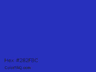 Hex #282fbc Color is a normal blue color and the nearest color is Persian Blue #1c39bb. Hex code #282fbc and RGB value is rgb(40,47,188). In RGB color space, this color is composed of 16% red, 18% green, 74% blue, In CMYK color space, this color is composed of 79% cyan, 75% magenta, 0% yellow , 26% black , In HSL color space, this color has a hue angle of 237° , 65% saturation and 45% lightness.