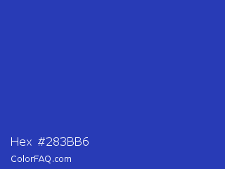 Hex #283bb6 Color is a normal blue color and the nearest color is Governor Bay #2f3cb3. Hex code #283bb6 and RGB value is rgb(40,59,182). In RGB color space, this color is composed of 16% red, 23% green, 71% blue, In CMYK color space, this color is composed of 78% cyan, 68% magenta, 0% yellow , 29% black , In HSL color space, this color has a hue angle of 232° , 64% saturation and 44% lightness.