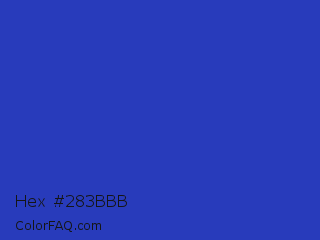 Hex #283bbb Color is a normal blue color and the nearest color is Governor Bay #2f3cb3. Hex code #283bbb and RGB value is rgb(40,59,187). In RGB color space, this color is composed of 16% red, 23% green, 73% blue, In CMYK color space, this color is composed of 79% cyan, 68% magenta, 0% yellow , 27% black , In HSL color space, this color has a hue angle of 232° , 65% saturation and 45% lightness.