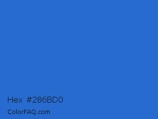 Hex #286bd0 Color is a normal blue color and the nearest color is Mariner #286acd. Hex code #286bd0 and RGB value is rgb(40,107,208). In RGB color space, this color is composed of 16% red, 42% green, 82% blue, In CMYK color space, this color is composed of 81% cyan, 49% magenta, 0% yellow , 18% black , In HSL color space, this color has a hue angle of 216° , 68% saturation and 49% lightness.