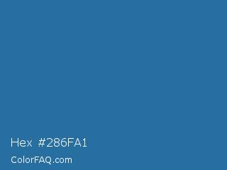 Hex #286fa1 Color is a normal blue color and the nearest color is Jelly Bean #297b9a. Hex code #286fa1 and RGB value is rgb(40,111,161). In RGB color space, this color is composed of 16% red, 44% green, 63% blue, In CMYK color space, this color is composed of 75% cyan, 31% magenta, 0% yellow , 37% black , In HSL color space, this color has a hue angle of 205° , 60% saturation and 39% lightness.