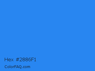 Hex #2886f1 Color is a normal blue color and the nearest color is Bleu De France #318ce7. Hex code #2886f1 and RGB value is rgb(40,134,241). In RGB color space, this color is composed of 16% red, 53% green, 95% blue, In CMYK color space, this color is composed of 83% cyan, 44% magenta, 0% yellow , 5% black , In HSL color space, this color has a hue angle of 212° , 88% saturation and 55% lightness.