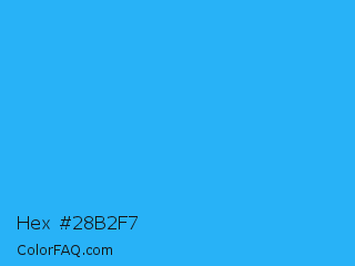 Hex #28b2f7 Color is a normal blue color and the nearest color is Button Blue #24a0ed. Hex code #28b2f7 and RGB value is rgb(40,178,247). In RGB color space, this color is composed of 16% red, 70% green, 97% blue, In CMYK color space, this color is composed of 84% cyan, 28% magenta, 0% yellow , 3% black , In HSL color space, this color has a hue angle of 200° , 93% saturation and 56% lightness.
