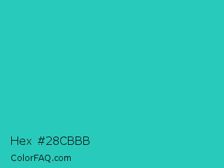 Hex #28cbbb Color is a normal cyan color and the nearest color is Java #1fc2c2. Hex code #28cbbb and RGB value is rgb(40,203,187). In RGB color space, this color is composed of 16% red, 80% green, 73% blue, In CMYK color space, this color is composed of 80% cyan, 0% magenta, 8% yellow , 20% black , In HSL color space, this color has a hue angle of 174° , 67% saturation and 48% lightness.