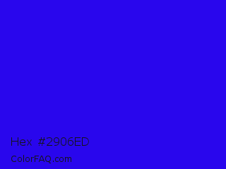 Hex #2906ed Color is a normal indigo color and the nearest color is Bluebonnet #1c1cf0. Hex code #2906ed and RGB value is rgb(41,6,237). In RGB color space, this color is composed of 16% red, 2% green, 93% blue, In CMYK color space, this color is composed of 83% cyan, 97% magenta, 0% yellow , 7% black , In HSL color space, this color has a hue angle of 249° , 95% saturation and 48% lightness.