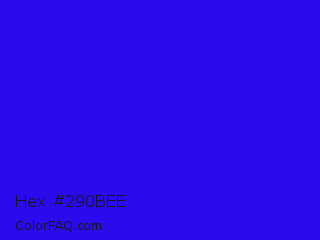 Hex #290bee Color is a normal indigo color and the nearest color is Bluebonnet #1c1cf0. Hex code #290bee and RGB value is rgb(41,11,238). In RGB color space, this color is composed of 16% red, 4% green, 93% blue, In CMYK color space, this color is composed of 83% cyan, 95% magenta, 0% yellow , 7% black , In HSL color space, this color has a hue angle of 248° , 91% saturation and 49% lightness.