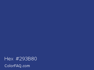 Hex #293b80 Color is a normal blue color and the nearest color is Bay Of Many #273a81. Hex code #293b80 and RGB value is rgb(41,59,128). In RGB color space, this color is composed of 16% red, 23% green, 50% blue, In CMYK color space, this color is composed of 68% cyan, 54% magenta, 0% yellow , 50% black , In HSL color space, this color has a hue angle of 228° , 51% saturation and 33% lightness.