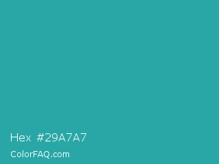 Hex #29a7a7 Color is a normal cyan color and the nearest color is Light Sea Green #20b2aa. Hex code #29a7a7 and RGB value is rgb(41,167,167). In RGB color space, this color is composed of 16% red, 65% green, 65% blue, In CMYK color space, this color is composed of 75% cyan, 0% magenta, 0% yellow , 35% black , In HSL color space, this color has a hue angle of 180° , 61% saturation and 41% lightness.
