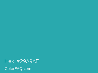 Hex #29a9ae Color is a normal cyan color and the nearest color is Light Sea Green #20b2aa. Hex code #29a9ae and RGB value is rgb(41,169,174). In RGB color space, this color is composed of 16% red, 66% green, 68% blue, In CMYK color space, this color is composed of 76% cyan, 3% magenta, 0% yellow , 32% black , In HSL color space, this color has a hue angle of 182° , 62% saturation and 42% lightness.