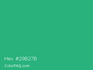 Hex #29b27b Color is a normal green color and the nearest color is Jungle Green #29ab87. Hex code #29b27b and RGB value is rgb(41,178,123). In RGB color space, this color is composed of 16% red, 70% green, 48% blue, In CMYK color space, this color is composed of 77% cyan, 0% magenta, 31% yellow , 30% black , In HSL color space, this color has a hue angle of 156° , 63% saturation and 43% lightness.
