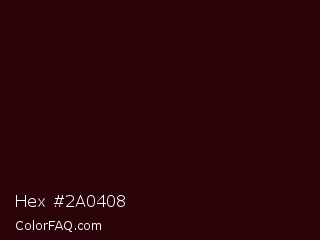 Hex #2a0408 Color is a almost black red color and the nearest color is Sepia Black #2b0202. Hex code #2a0408 and RGB value is rgb(42,4,8). In RGB color space, this color is composed of 16% red, 2% green, 3% blue, In CMYK color space, this color is composed of 0% cyan, 90% magenta, 81% yellow , 84% black , In HSL color space, this color has a hue angle of 354° , 83% saturation and 9% lightness.