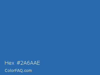 Hex #2a6aae Color is a normal blue color and the nearest color is Lapis Lazuli #26619c. Hex code #2a6aae and RGB value is rgb(42,106,174). In RGB color space, this color is composed of 16% red, 42% green, 68% blue, In CMYK color space, this color is composed of 76% cyan, 39% magenta, 0% yellow , 32% black , In HSL color space, this color has a hue angle of 211° , 61% saturation and 42% lightness.