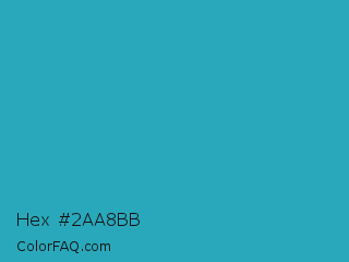 Hex #2aa8bb Color is a normal cyan color and the nearest color is Pacific Blue #1ca9c9. Hex code #2aa8bb and RGB value is rgb(42,168,187). In RGB color space, this color is composed of 16% red, 66% green, 73% blue, In CMYK color space, this color is composed of 78% cyan, 10% magenta, 0% yellow , 27% black , In HSL color space, this color has a hue angle of 188° , 63% saturation and 45% lightness.
