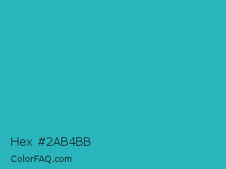 Hex #2ab4bb Color is a normal cyan color and the nearest color is Maximum Blue Green #30bfbf. Hex code #2ab4bb and RGB value is rgb(42,180,187). In RGB color space, this color is composed of 16% red, 71% green, 73% blue, In CMYK color space, this color is composed of 78% cyan, 4% magenta, 0% yellow , 27% black , In HSL color space, this color has a hue angle of 183° , 63% saturation and 45% lightness.