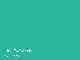 Hex #2ab79b Color is a normal cyan color and the nearest color is Mountain Meadow #30ba8f. Hex code #2ab79b and RGB value is rgb(42,183,155). In RGB color space, this color is composed of 16% red, 72% green, 61% blue, In CMYK color space, this color is composed of 77% cyan, 0% magenta, 15% yellow , 28% black , In HSL color space, this color has a hue angle of 168° , 63% saturation and 44% lightness.