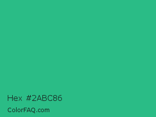 Hex #2abc86 Color is a normal green color and the nearest color is Mountain Meadow #30ba8f. Hex code #2abc86 and RGB value is rgb(42,188,134). In RGB color space, this color is composed of 16% red, 74% green, 53% blue, In CMYK color space, this color is composed of 78% cyan, 0% magenta, 29% yellow , 26% black , In HSL color space, this color has a hue angle of 158° , 63% saturation and 45% lightness.