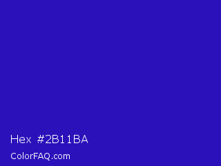 Hex #2b11ba Color is a normal indigo color and the nearest color is Interdimensional Blue #360ccc. Hex code #2b11ba and RGB value is rgb(43,17,186). In RGB color space, this color is composed of 17% red, 7% green, 73% blue, In CMYK color space, this color is composed of 77% cyan, 91% magenta, 0% yellow , 27% black , In HSL color space, this color has a hue angle of 249° , 83% saturation and 40% lightness.