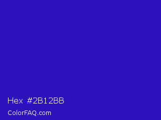 Hex #2b12bb Color is a normal indigo color and the nearest color is Interdimensional Blue #360ccc. Hex code #2b12bb and RGB value is rgb(43,18,187). In RGB color space, this color is composed of 17% red, 7% green, 73% blue, In CMYK color space, this color is composed of 77% cyan, 90% magenta, 0% yellow , 27% black , In HSL color space, this color has a hue angle of 249° , 82% saturation and 40% lightness.
