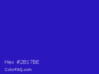 Hex #2b17be Color is a normal indigo color and the nearest color is Interdimensional Blue #360ccc. Hex code #2b17be and RGB value is rgb(43,23,190). In RGB color space, this color is composed of 17% red, 9% green, 75% blue, In CMYK color space, this color is composed of 77% cyan, 88% magenta, 0% yellow , 25% black , In HSL color space, this color has a hue angle of 247° , 78% saturation and 42% lightness.