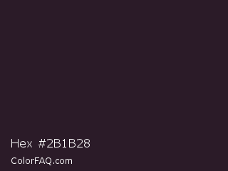 Hex #2b1b28 Color is a very dark magenta color and the nearest color is Raisin Black #242124. Hex code #2b1b28 and RGB value is rgb(43,27,40). In RGB color space, this color is composed of 17% red, 11% green, 16% blue, In CMYK color space, this color is composed of 0% cyan, 37% magenta, 7% yellow , 83% black , In HSL color space, this color has a hue angle of 311° , 23% saturation and 14% lightness.