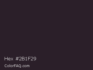Hex #2b1f29 Color is a very dark magenta color and the nearest color is Bastille #292130. Hex code #2b1f29 and RGB value is rgb(43,31,41). In RGB color space, this color is composed of 17% red, 12% green, 16% blue, In CMYK color space, this color is composed of 0% cyan, 28% magenta, 5% yellow , 83% black , In HSL color space, this color has a hue angle of 310° , 16% saturation and 15% lightness.