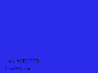 Hex #2b2beb Color is a normal blue color and the nearest color is Palatinate Blue #273be2. Hex code #2b2beb and RGB value is rgb(43,43,235). In RGB color space, this color is composed of 17% red, 17% green, 92% blue, In CMYK color space, this color is composed of 82% cyan, 82% magenta, 0% yellow , 8% black , In HSL color space, this color has a hue angle of 240° , 83% saturation and 55% lightness.