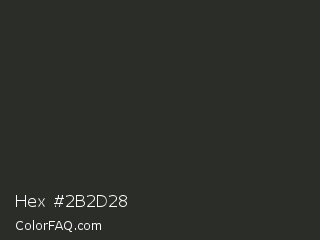 Hex #2b2d28 Color is a very dark green color and the nearest color is Heavy Metal #2b3228. Hex code #2b2d28 and RGB value is rgb(43,45,40). In RGB color space, this color is composed of 17% red, 18% green, 16% blue, In CMYK color space, this color is composed of 4% cyan, 0% magenta, 11% yellow , 82% black , In HSL color space, this color has a hue angle of 84° , 6% saturation and 17% lightness.