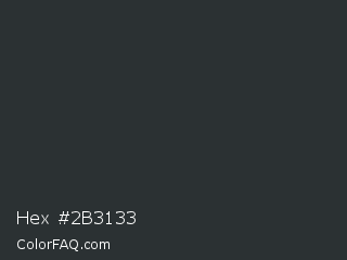 Hex #2b3133 Color is a very dark blue color and the nearest color is Gunmetal #2a3439. Hex code #2b3133 and RGB value is rgb(43,49,51). In RGB color space, this color is composed of 17% red, 19% green, 20% blue, In CMYK color space, this color is composed of 16% cyan, 4% magenta, 0% yellow , 80% black , In HSL color space, this color has a hue angle of 195° , 9% saturation and 18% lightness.