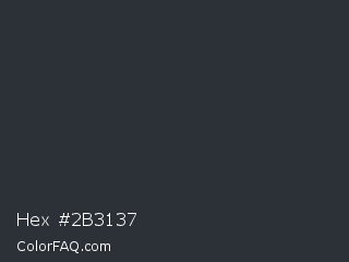 Hex #2b3137 Color is a very dark blue color and the nearest color is Gunmetal #2a3439. Hex code #2b3137 and RGB value is rgb(43,49,55). In RGB color space, this color is composed of 17% red, 19% green, 22% blue, In CMYK color space, this color is composed of 22% cyan, 11% magenta, 0% yellow , 78% black , In HSL color space, this color has a hue angle of 210° , 12% saturation and 19% lightness.