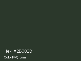 Hex #2b382b Color is a very dark green color and the nearest color is Heavy Metal #2b3228. Hex code #2b382b and RGB value is rgb(43,56,43). In RGB color space, this color is composed of 17% red, 22% green, 17% blue, In CMYK color space, this color is composed of 23% cyan, 0% magenta, 23% yellow , 78% black , In HSL color space, this color has a hue angle of 120° , 13% saturation and 19% lightness.