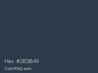 Hex #2b3b49 Color is a dark blue color and the nearest color is Japanese Indigo #264348. Hex code #2b3b49 and RGB value is rgb(43,59,73). In RGB color space, this color is composed of 17% red, 23% green, 29% blue, In CMYK color space, this color is composed of 41% cyan, 19% magenta, 0% yellow , 71% black , In HSL color space, this color has a hue angle of 208° , 26% saturation and 23% lightness.