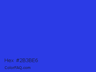 Hex #2b3be6 Color is a normal blue color and the nearest color is Palatinate Blue #273be2. Hex code #2b3be6 and RGB value is rgb(43,59,230). In RGB color space, this color is composed of 17% red, 23% green, 90% blue, In CMYK color space, this color is composed of 81% cyan, 74% magenta, 0% yellow , 10% black , In HSL color space, this color has a hue angle of 235° , 79% saturation and 54% lightness.