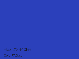 Hex #2b40bb Color is a normal blue color and the nearest color is Governor Bay #2f3cb3. Hex code #2b40bb and RGB value is rgb(43,64,187). In RGB color space, this color is composed of 17% red, 25% green, 73% blue, In CMYK color space, this color is composed of 77% cyan, 66% magenta, 0% yellow , 27% black , In HSL color space, this color has a hue angle of 231° , 63% saturation and 45% lightness.