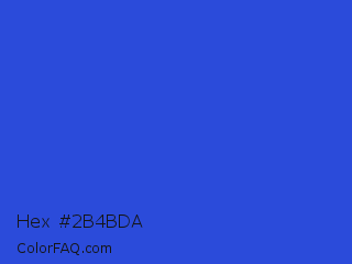 Hex #2b4bda Color is a normal blue color and the nearest color is Palatinate Blue #273be2. Hex code #2b4bda and RGB value is rgb(43,75,218). In RGB color space, this color is composed of 17% red, 29% green, 85% blue, In CMYK color space, this color is composed of 80% cyan, 66% magenta, 0% yellow , 15% black , In HSL color space, this color has a hue angle of 229° , 70% saturation and 51% lightness.