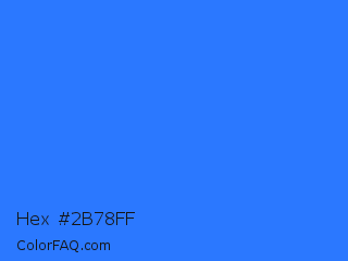 Hex #2b78ff Color is a normal blue color and the nearest color is Blue Crayola #1f75fe. Hex code #2b78ff and RGB value is rgb(43,120,255). In RGB color space, this color is composed of 17% red, 47% green, 100% blue, In CMYK color space, this color is composed of 83% cyan, 53% magenta, 0% yellow , 0% black , In HSL color space, this color has a hue angle of 218° , 100% saturation and 58% lightness.