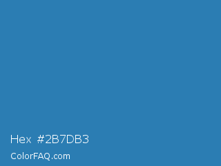 Hex #2b7db3 Color is a normal blue color and the nearest color is Astral #327da0. Hex code #2b7db3 and RGB value is rgb(43,125,179). In RGB color space, this color is composed of 17% red, 49% green, 70% blue, In CMYK color space, this color is composed of 76% cyan, 30% magenta, 0% yellow , 30% black , In HSL color space, this color has a hue angle of 204° , 61% saturation and 44% lightness.