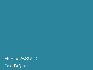 Hex #2b869d Color is a normal cyan color and the nearest color is Jelly Bean #297b9a. Hex code #2b869d and RGB value is rgb(43,134,157). In RGB color space, this color is composed of 17% red, 53% green, 62% blue, In CMYK color space, this color is composed of 73% cyan, 15% magenta, 0% yellow , 38% black , In HSL color space, this color has a hue angle of 192° , 57% saturation and 39% lightness.