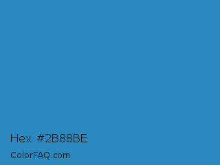 Hex #2b88be Color is a normal blue color and the nearest color is Cyan Cornflower Blue #188bc2. Hex code #2b88be and RGB value is rgb(43,136,190). In RGB color space, this color is composed of 17% red, 53% green, 75% blue, In CMYK color space, this color is composed of 77% cyan, 28% magenta, 0% yellow , 25% black , In HSL color space, this color has a hue angle of 202° , 63% saturation and 46% lightness.