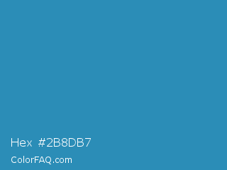 Hex #2b8db7 Color is a normal blue color and the nearest color is Boston Blue #3b91b4. Hex code #2b8db7 and RGB value is rgb(43,141,183). In RGB color space, this color is composed of 17% red, 55% green, 72% blue, In CMYK color space, this color is composed of 77% cyan, 23% magenta, 0% yellow , 28% black , In HSL color space, this color has a hue angle of 198° , 62% saturation and 44% lightness.