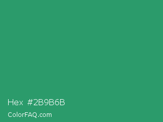 Hex #2b9b6b Color is a normal green color and the nearest color is Illuminating Emerald #319177. Hex code #2b9b6b and RGB value is rgb(43,155,107). In RGB color space, this color is composed of 17% red, 61% green, 42% blue, In CMYK color space, this color is composed of 72% cyan, 0% magenta, 31% yellow , 39% black , In HSL color space, this color has a hue angle of 154° , 57% saturation and 39% lightness.