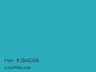Hex #2badbb Color is a normal cyan color and the nearest color is Maximum Blue Green #30bfbf. Hex code #2badbb and RGB value is rgb(43,173,187). In RGB color space, this color is composed of 17% red, 68% green, 73% blue, In CMYK color space, this color is composed of 77% cyan, 7% magenta, 0% yellow , 27% black , In HSL color space, this color has a hue angle of 186° , 63% saturation and 45% lightness.