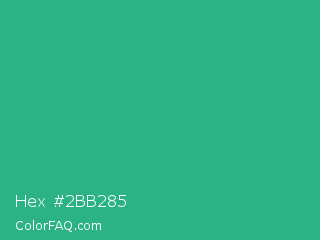 Hex #2bb285 Color is a normal green color and the nearest color is Jungle Green #29ab87. Hex code #2bb285 and RGB value is rgb(43,178,133). In RGB color space, this color is composed of 17% red, 70% green, 52% blue, In CMYK color space, this color is composed of 76% cyan, 0% magenta, 25% yellow , 30% black , In HSL color space, this color has a hue angle of 160° , 61% saturation and 43% lightness.