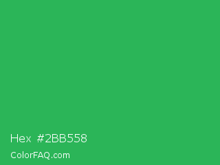 Hex #2bb558 Color is a normal green color and the nearest color is Chateau Green #40a860. Hex code #2bb558 and RGB value is rgb(43,181,88). In RGB color space, this color is composed of 17% red, 71% green, 35% blue, In CMYK color space, this color is composed of 76% cyan, 0% magenta, 51% yellow , 29% black , In HSL color space, this color has a hue angle of 140° , 62% saturation and 44% lightness.