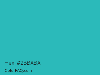 Hex #2bbaba Color is a normal cyan color and the nearest color is Maximum Blue Green #30bfbf. Hex code #2bbaba and RGB value is rgb(43,186,186). In RGB color space, this color is composed of 17% red, 73% green, 73% blue, In CMYK color space, this color is composed of 77% cyan, 0% magenta, 0% yellow , 27% black , In HSL color space, this color has a hue angle of 180° , 62% saturation and 45% lightness.
