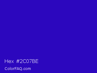 Hex #2c07be Color is a normal indigo color and the nearest color is Interdimensional Blue #360ccc. Hex code #2c07be and RGB value is rgb(44,7,190). In RGB color space, this color is composed of 17% red, 3% green, 75% blue, In CMYK color space, this color is composed of 77% cyan, 96% magenta, 0% yellow , 25% black , In HSL color space, this color has a hue angle of 252° , 93% saturation and 39% lightness.
