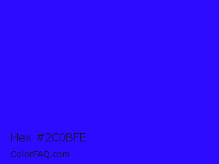 Hex #2c0bfe Color is a normal indigo color and the nearest color is Electric Ultramarine #3f00ff. Hex code #2c0bfe and RGB value is rgb(44,11,254). In RGB color space, this color is composed of 17% red, 4% green, 100% blue, In CMYK color space, this color is composed of 83% cyan, 96% magenta, 0% yellow , 0% black , In HSL color space, this color has a hue angle of 248° , 99% saturation and 52% lightness.