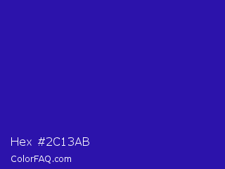 Hex #2c13ab Color is a normal indigo color and the nearest color is Blue Gem #2c0e8c. Hex code #2c13ab and RGB value is rgb(44,19,171). In RGB color space, this color is composed of 17% red, 7% green, 67% blue, In CMYK color space, this color is composed of 74% cyan, 89% magenta, 0% yellow , 33% black , In HSL color space, this color has a hue angle of 250° , 80% saturation and 37% lightness.