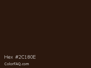 Hex #2c180e Color is a very dark orange color and the nearest color is Coffee Bean #2a140e. Hex code #2c180e and RGB value is rgb(44,24,14). In RGB color space, this color is composed of 17% red, 9% green, 5% blue, In CMYK color space, this color is composed of 0% cyan, 45% magenta, 68% yellow , 83% black , In HSL color space, this color has a hue angle of 20° , 52% saturation and 11% lightness.