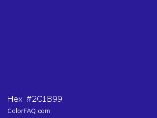 Hex #2c1b99 Color is a normal indigo color and the nearest color is Jacksons Purple #20208d. Hex code #2c1b99 and RGB value is rgb(44,27,153). In RGB color space, this color is composed of 17% red, 11% green, 60% blue, In CMYK color space, this color is composed of 71% cyan, 82% magenta, 0% yellow , 40% black , In HSL color space, this color has a hue angle of 248° , 70% saturation and 35% lightness.